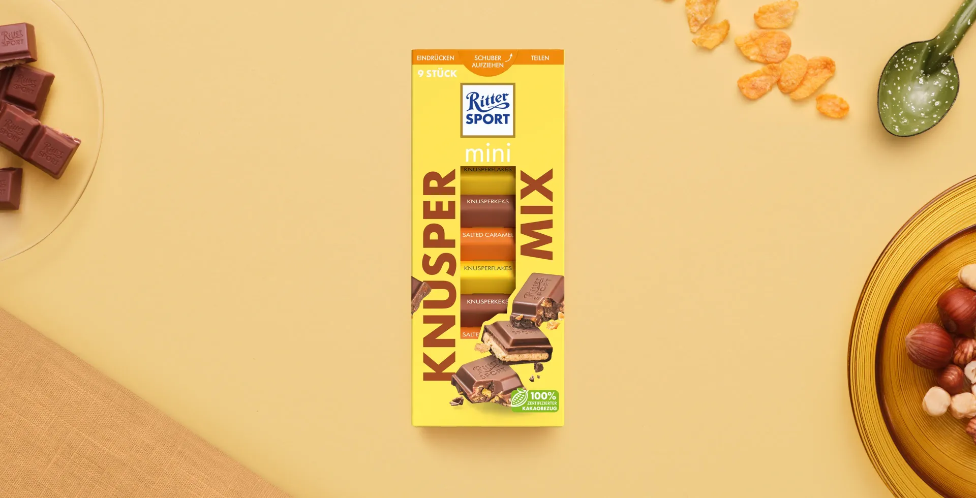 Schon gehört? Die beliebten Knusper-minis von Ritter Sport gibt’s ab jetzt im leckeren Mix. Mit den drei Sorten Knusperflakes, Knusperkeks und Salted Caramel kannst du es ordentlich krachen lassen. Na, wie klingt das für dich? Finde es heraus und lass mal von dir hören. Wir sind gespannt!