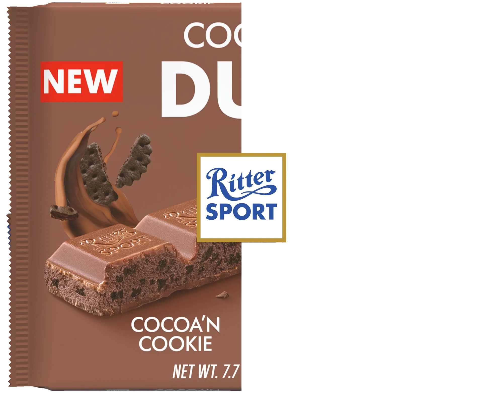 La novità Cookie DUO offre al palato un abbinamento irresistibile: crema al cacao con biscotti al cioccolato, da una parte; crema al latte con biscotti alla vaniglia e cacao, dall'altra. Doppio il gusto, doppio il divertimento ad ogni singolo morso!<br>