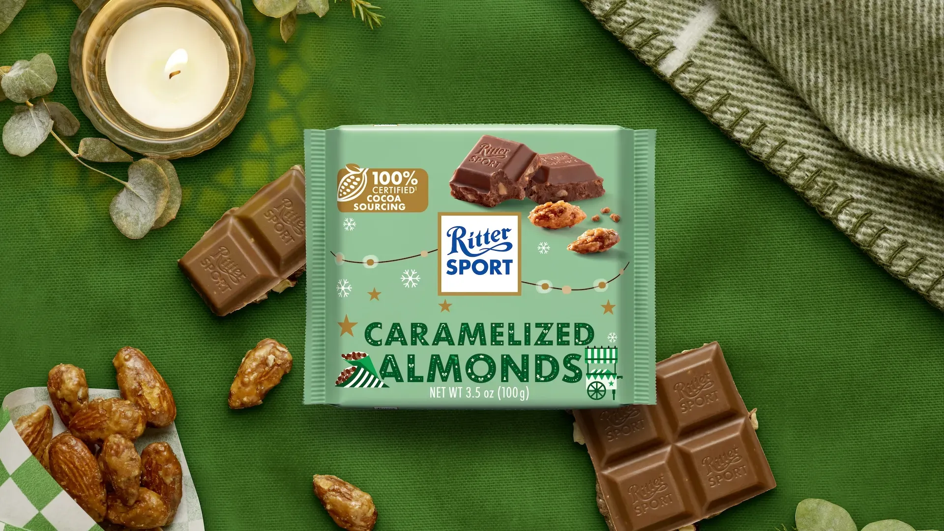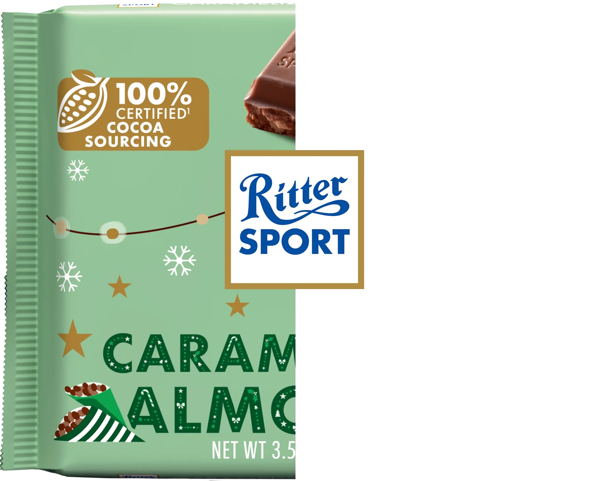 Ogni volta che arriva il grande freddo, è il momento di<br>concedersi una coccola in più: Ritter Sport “Caramelized Almonds” ritorna per la nostra<br>gioia! La deliziosa combinazione di cioccolato al latte -certificato<br>al 100% da fonti sostenibili- e pezzetti di mandorle caramellate è così tanto<br>attesa che ci chiediamo: questo gusto invernale potrà mai passare di moda?